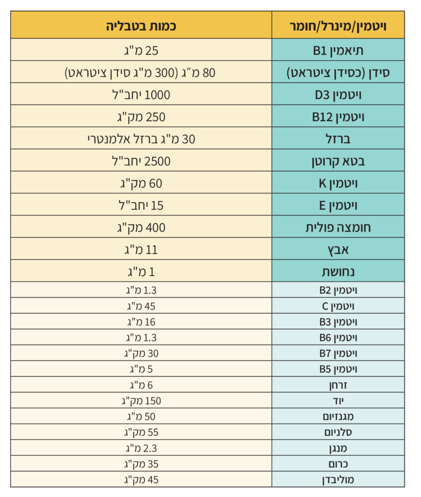 7. מהי תכולת הויטמינים והמינרלים בכל טבליה של בריטמין?